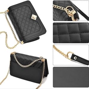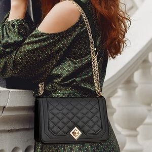 🆕️ Quilted Faux Leather Crossbody Evening Bag Shoulder Handbag Gold Hardware