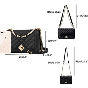 Chain strap and buckles accentuate the whole bag: Half chain and half leather design can be used with single or double chain.