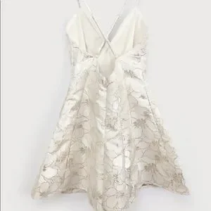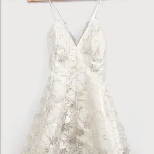 Lulus Shining Brightly Ivory and Gold Floral Jacquard Mini Dress
