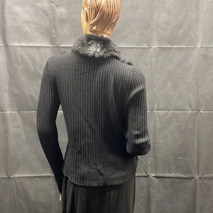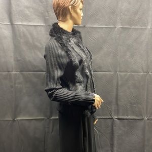 Vintage Dolce Cabo Black Knit Fur Front Zipper Cardigan