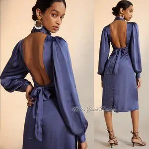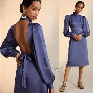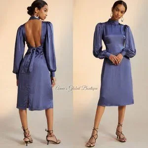 Brand new with tags NWT ANTHROPOLOGIE HUTCH Open-Back Midi Dress. Juxtaposing a high neck and puffed sleeves with an open back, this midi dress evokes timeless glamour. Simply add statement earrings and heels for a head-turning ensemble.