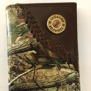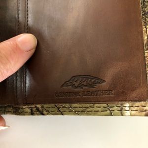 Real leather wallet with RealTree outside. In good shape. It measures 7” long and 4” wide.
