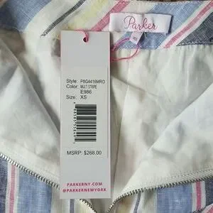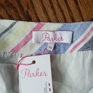 NWT Parker multi stripe, 100% linen mini skirt with ruffles, fully lined with 100% cotton. Cute zipper closure in front. Brand new with tags. Perfect for summer/ vacation.