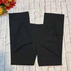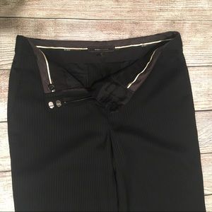 BCBG MaxAzria Black Striped Trousers. Featuring a bootcut leg with 4 pockets, zipper closure. 52% Wool / 30 Viscose / 10% Nylon / 2% Spandex. Dry Clean. AJF2B168 Mariam. Excellent Used Condition. Size 4.