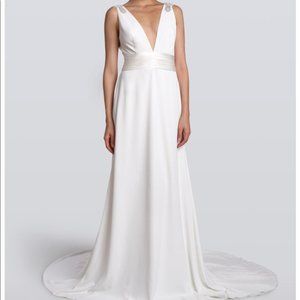 Carmen Marc Valvo C90042 Wedding Dress V Neck Size 6