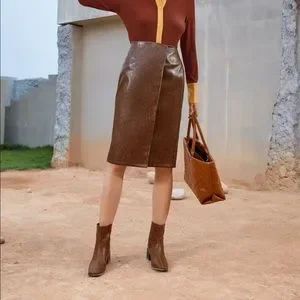 High waist PU leather wrap skirt