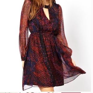 Worn only a couple of times, excellent conditions! Multicolor dress : black, purple and red with elastic waistband
