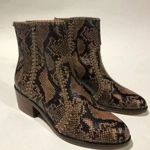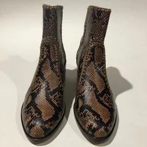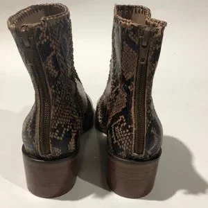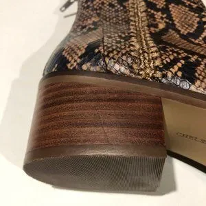 Chelsea And Violet Womens CV Lucy Black Brown Block Heel Ankle Zip Boot Size 6.5