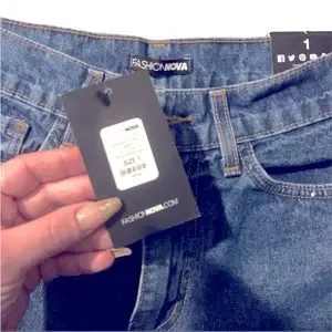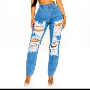 New with tags never worn, Medium blue distressed boyfriend jeans.