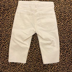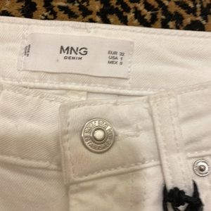 MANGO (MNG)white denim shorts. Raw hem Size label is European. Approx size 24