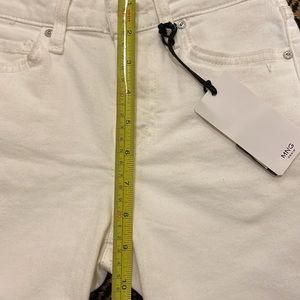 MNG white denim Bermuda shorts with raw hem. Mid rise European label. Size suggests 24