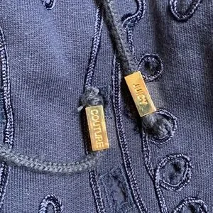 Juicy Couture waist tie navy blue embroidered romper jumpsuit dress size XS