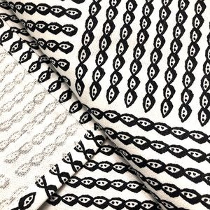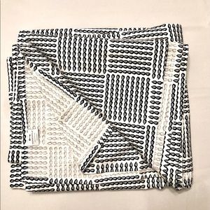 New without tags! Simple and striking black and white tablecloth with pattern that harks back to traditional African cowrie shell prints. Large size, approximately 104”x60”.