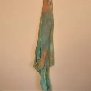 Brand new with tags, this simple and pretty scarf is 100% silk with colorful pastel tie dye and makes the perfect versatile accessory! Definitely a boho, hippie vibe. Makes a great gift!