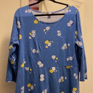 Old Navy blue dress, Size: XL, yellow and white flowers patterned all over the dress, long sleeve, 100% cotton, no damage to material, comfortable and breathable, not tight around the body.