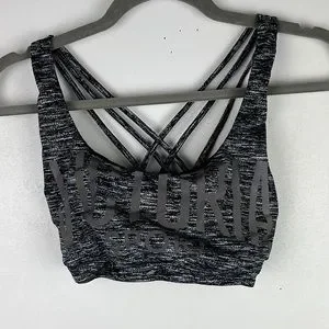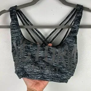 Victoria’s Secret Sport VSX Sports Bra Gray Strappy Logo Yoga Workout Medium
