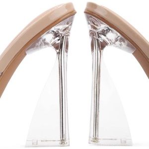 🩵 LAST ONE 🩵 Cape Robbin Clear Asymmetrical Block Heels - Patent Nude