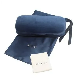 Authentic Gucci velvet hard Sunglass or eyeglass case in a beautiful deep navy blue color with matching satin drawstring pouch and paperwork included. New with no major damage. Velvet is delicate and may have some marks from storage but no stains, marks etc. unused. Does NOT included any glasses. Just case!