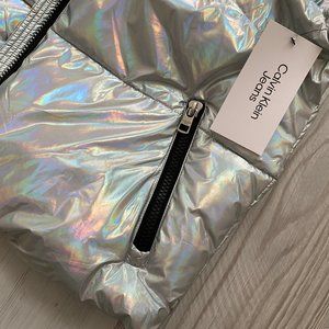 đź’–MEGA SALEđź’–Calvin Klein Men's CJCV7010 IRD Puffer Silver Sleeveless Zipper