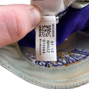 This super stylish Lakers hat is ready for a new home! It’s got a lot of patches, is an official NBA product from Adidas, and has the classic yellow and purple color scheme! It is from the 2013 draft, has a two color snap on the back, stickers are still in tact on both the top and bottom of the brim, and there is some ghost texturing within the purple on all of the panels! The front panel logo patch you could see from space! This would make a great gift or addition to a collection!