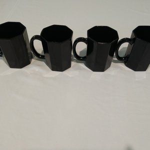 Arcoroc France Black Octime Octagon Glass Mugs Coffee Cups Vintage 80's
