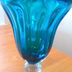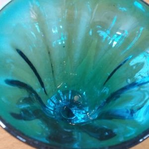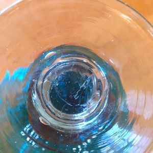 Heavy glass, I think it's hand blown - roughness on bottom appears to be where it was removed from the tool used to make it.