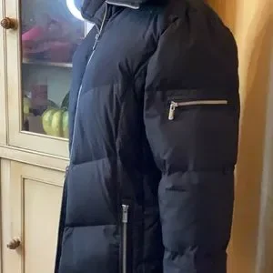@nhoogewerf it is a ladies coat with no hood and shell of the coat is polyester, the lining is a blend and the filling is 80% down and I added picture of content label. I hope that answers your questions and let me know if I can be of further help. Aida