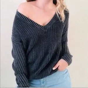 LOVE PINK = FORENZA CHUNKY KNIT V-NECK SWEATER WITH NO LABELS OR TAGS, A new, unused, unworn item shipped in Professional Packaging -No Rips, Tears, Snags, Stains, Holes or Discoloration (Please see picture as to the condition of the sweater) - Actual Pink Victoria's Secret Sweater which had no labels. Never Worn - Brand New! Size: Extra Large - Again, Please See Pictures for Measurements - Color: Charcoal Gray - Faded acid wash. US Chart Size: Extra Large. With an actual oversized fit. Approximate measurement taken flat: Armpit to armpit: 23" Sleeve: Top of Collar to bottom of sleeve, 28” - Length: 20" Top Of Sleeve Seam to bottom band - Chest: 30" - Bust 36" Thank you for looking! Have a Groovy day & Enjoy! A-B3