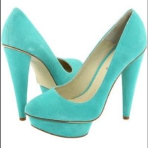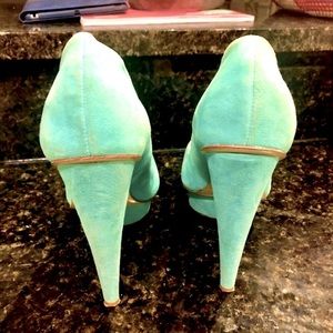 Elizabeth & James "Mason" Teal Suede Platform Heels, US size 8-1/2 B. These glorious shoes are designed by Elizabeth & James, designer fashion line owned by the Olsen Twins. Worn in pics by rapper Trina :-)