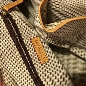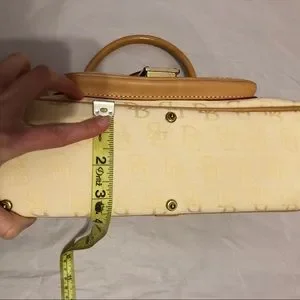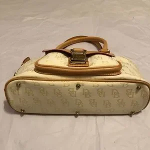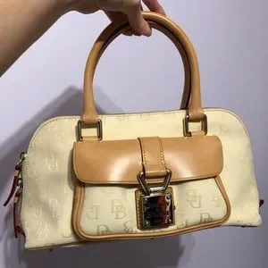 Dooney & Bourke Signature Monogram Cream Tan Canvas & Leather Mix Satchel Bag
