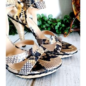 Via Spiga Crisscross Ankle Strap Leather Snake Embossed Jute Platform Sandal