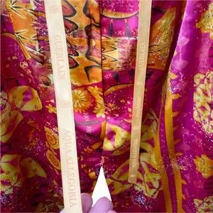 @rhiannonreh I wish I had more detail on this dress. I think it was a special release/collaboration. It feels like silk/satin to me but if I didn’t include fabric content, it is likely missing the fabric tag. It’s a gorgeous dress and very flattering fit. So unique too