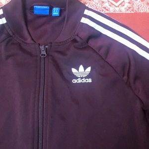 Adidas RARE awesome trefoil track coat with banded writing on back Sz XS EUC