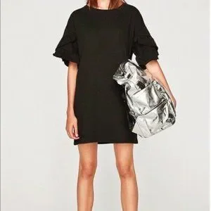 Zara Trafaluc Women's Black Ruffled Sleeve Shift Dress Size Large L