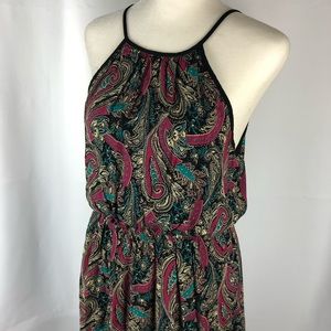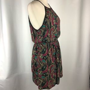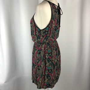 Great condition Sleeveless Dress from Forever 21. High neck, tie back. Elastic waist. Pink and teal paisley print.