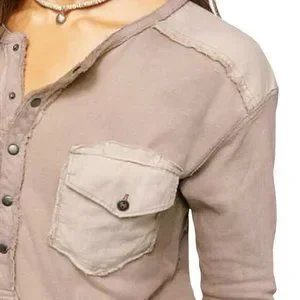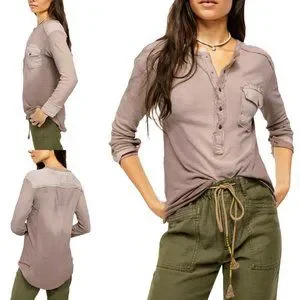 Free People Gene Henley Reishi Shirt Size Large. Our products are 100% authentic and are purchased from high-end department stores throughout the US. I hope that you have a positive shopping experience and hope to gain your trust to have your business. Thank you for stopping by.