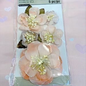 Pink floral embellishments. 5 pieces. For DIY projects. Brand new. Never opened.