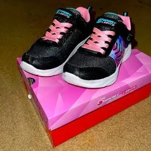 🎆🎆 These super cute Sketcher’s Sport Lights are not only comfortable but with the Velcro top strip make’s them great for quick on the go children 🎇🎇 They also light up on the sides to give any little girl some flash and flare to her look🌠🌠