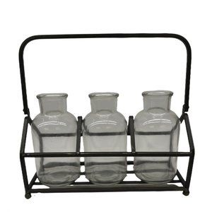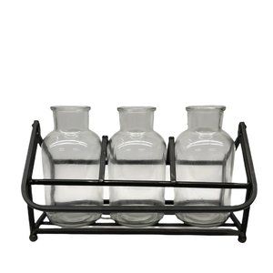 Apothecary Bottles, 3 Piece Set with Metal Stand Holder with Handle