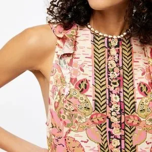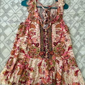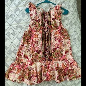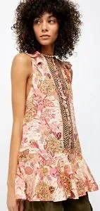Gathering inspiration from the past and interpreting it for the present in a unique way is at the heart of the Free People aesthetic. A sketchbook floral print makes a splash on a sleeveless tunic complete with a flowy, ruffled hem. This beautiful top embodies FP. Pair it with shorts, jeans or as a standalone mini dress. Only worn once and in excellent condition.