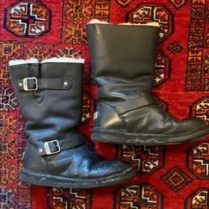Reposhing this item I purchased from @lilkooky. Loved it, but ready to rotate for something new. These are a size 9 but run much smaller. Probably best fit a size 7.5. Because of all the fleece inside and the fact they are leather they fit much more snug.