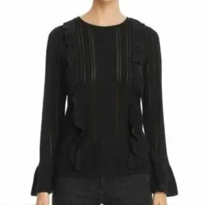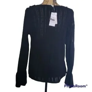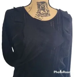 NEW large design history black sweater with ruffled front and bell sleeves