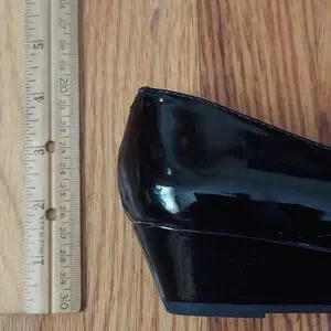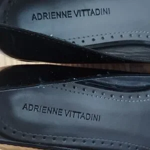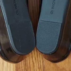 Adrienne Vittadini Palm Beach Black Patent Wedges w/ Rhinestone Details Size 6