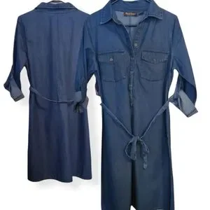 Speed Control💙Denim Dress with Self Tie and Rolled Elbow Sleeves, Size S