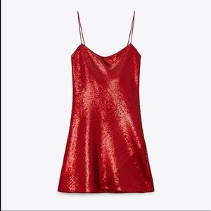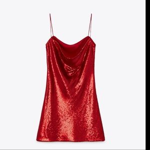 Zara Red Sequin Sleeveless Mini Dress Size XL