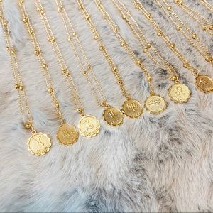 Gold Zodiac Coin Pendant w/Ball Bead Chain.
