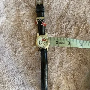 😻🩷Hello kitty🎀 watch with charms and leather band. In great used condition. Back still has sticker on it.