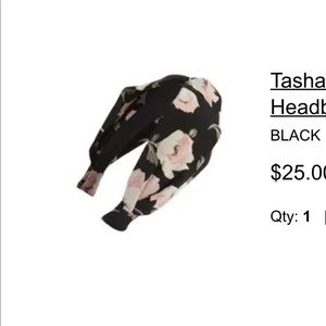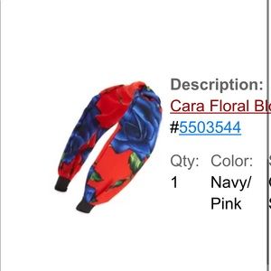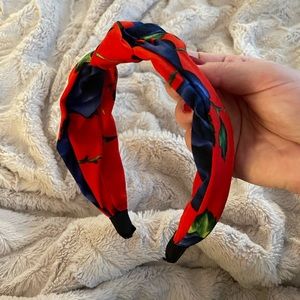 Two knotted, turban style headbands bought from Nordstrom. One is black and light rose with flowers. The other is red with bright navy flowers.