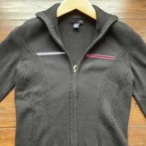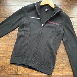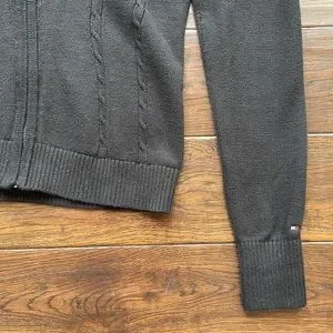 Tommy Hilfiger black logo cardigan zip up cable knit stretchy