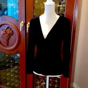 Vintage Tahari Top 70% Viscose and 30% Polyester size Medium made in the USA long sleeves deep V neck very sexy